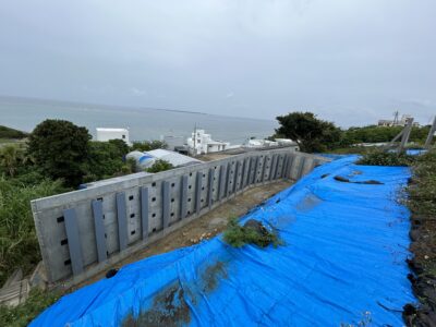南城市知念の安座間ビーチが見えるCRM擁壁(高さ4m)が完成しました。